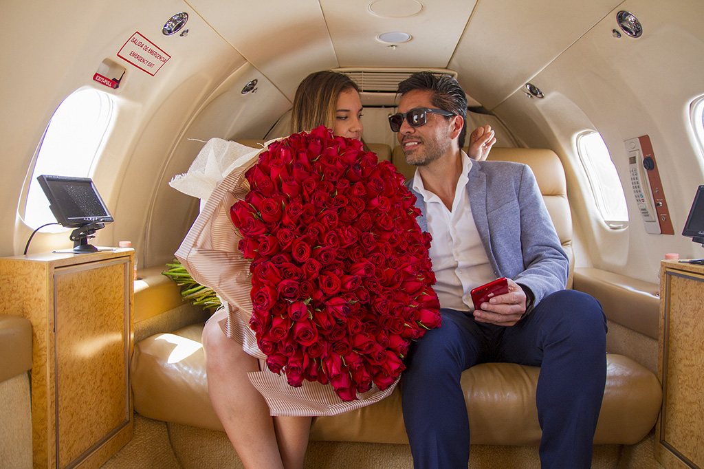 Nos vamos a Los Cabos en un jet privado (learjet 35) Un mayordomo los recibe en el hangar de Toluca, los reciben en una casa privada para después transportarse a la mágica cita que los espera en el mar, solo tu pareja, tú y el sonido de 10 músicos concertistas, un cena preparada por chef…