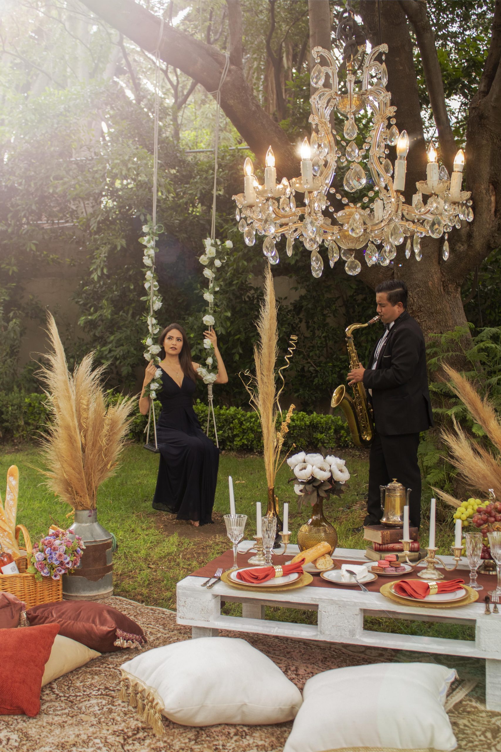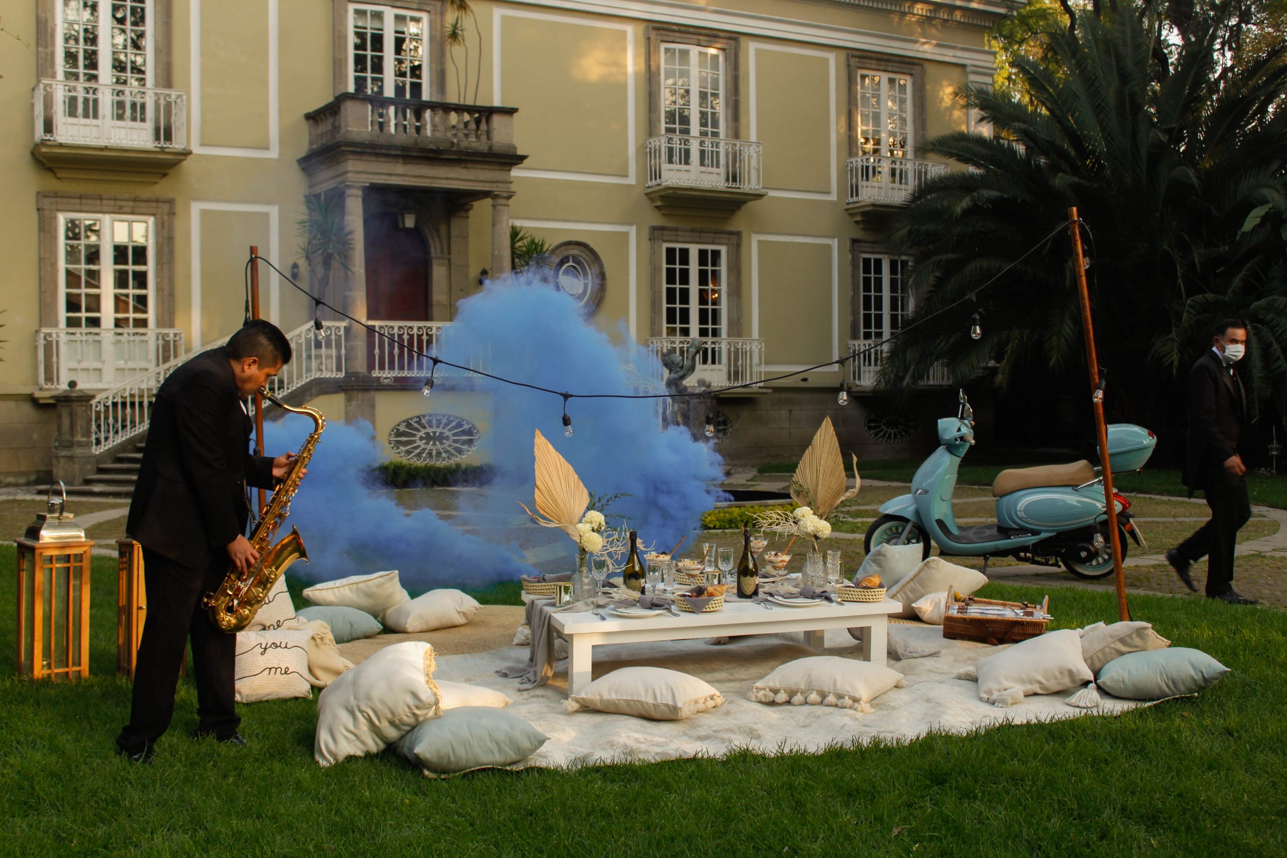 El picnic más elegante toma lugar en el jardín principal de la Mansión Papilio, un lugar para cada ser querido mientras son consentidos por un mayordomo de guante blanco, el sonido del sax ameniza la reunión hasta que el misterio es revelado con pirotecnia de humo, un momento épico para iniciar la historia de tu…
