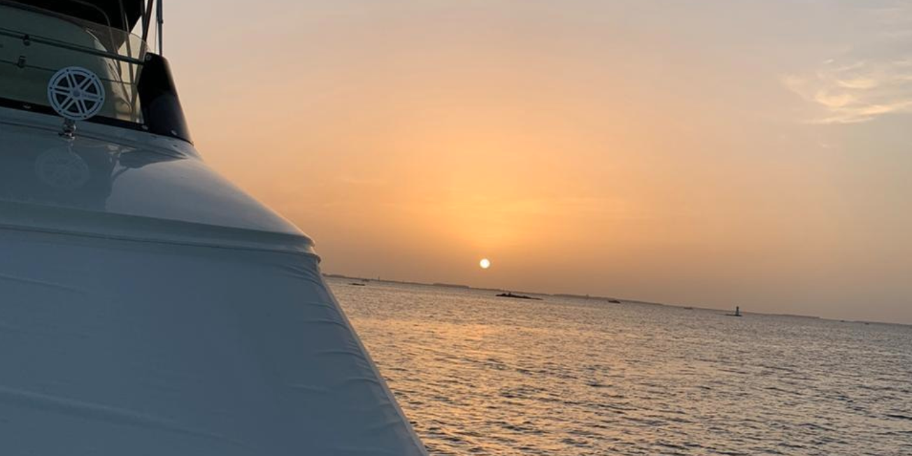 Imagina una cita en Cancún donde el atardecer y el mar se vuelven uno solo, abordando un yate de lujo Meridian que los llevará a navegar mientras son consentidos por un mayordomo de guante blanco, solo tu pareja, tú y el sonido del sax mezclandose con las olas, un chef ejecutivo prepara su cena para finalizar con un ritual con acentos de pirotecnia, una experiencia inolvidable