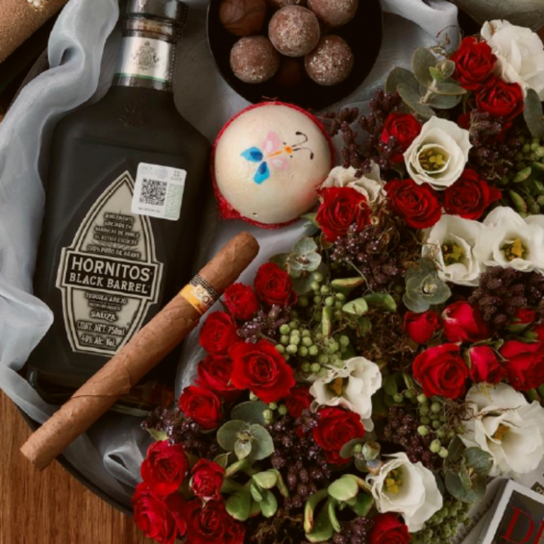 Regala una botella de tequila, trufas, y un arreglo de suculentas con rosas mientras liberas una mariposa en un ritual…